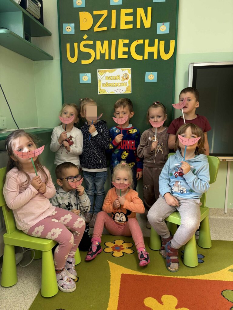 Dzień Uśmiechu gru 3, 2025 Celem tego szczególnego dnia jest wprowadzenie dzieci w dobry nastrój i uświadomienie im znaczenia uśmiechu. Było dużo radości zarówno na świeżym powietrzu jak i w sali przedszkolnej.