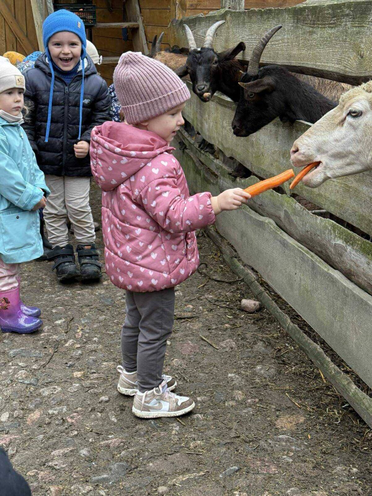 Każda z grup miała okazję zobaczyć jak wygląda tradycyjne kopanie ziemniaków. Dzieci poznały też ich budowę i sadziły rośliny bulwiaste. Nie ominęło nas również karmienie zwierząt w gospodarstwie